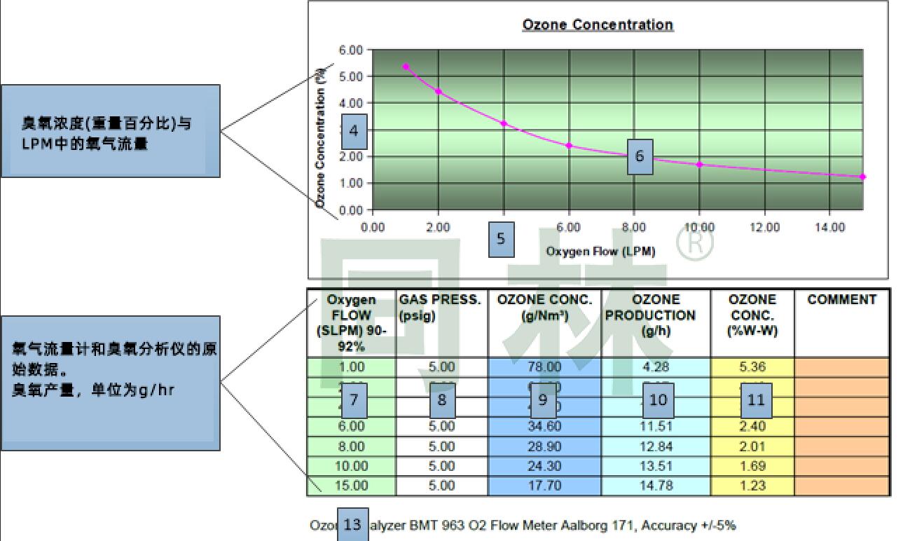 下面的圖表是臭氧發生器性能圖表的一個例子。